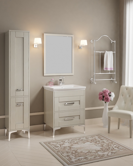 Напольный пенал выполнен из влагостойкого МДФ в классическом стиле.