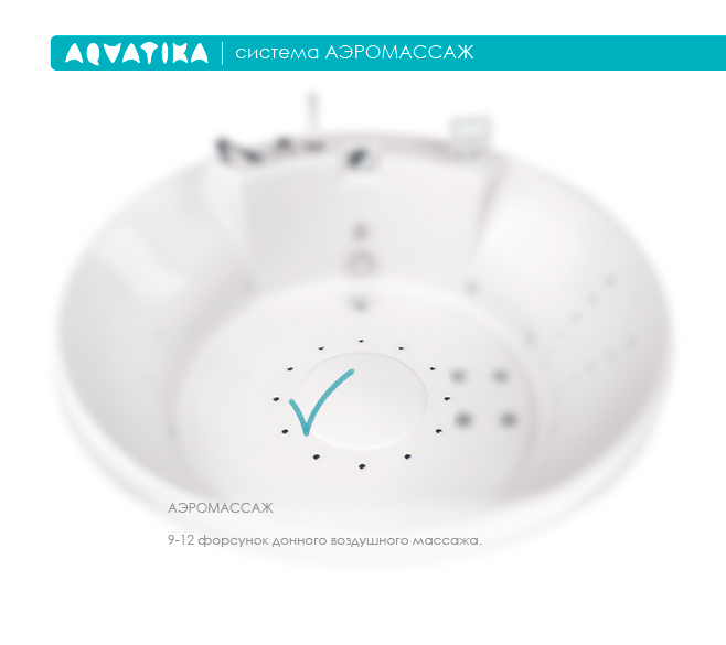 Ценители необычных и смелых решений смогут по достоинству оценить эту акриловую ванну в форме круга. Необычный дизайн, большой объем чаши (690 литров) и множество гидромассажных форсунок сделают Ваш вечер незабываемым! Вы сможете с головой окунуться в прохладную воду, расслабить мышцы спины и насладиться приятными телу пузырьками, поднимающимися на поверхность. Смесители и душевые лейки устанавливаются на бортике на небольшом возвышении. Гидромассажная ванна «Арена» создана для смелых людей, которые не боятся экспериментов и открыты новым веяниям.