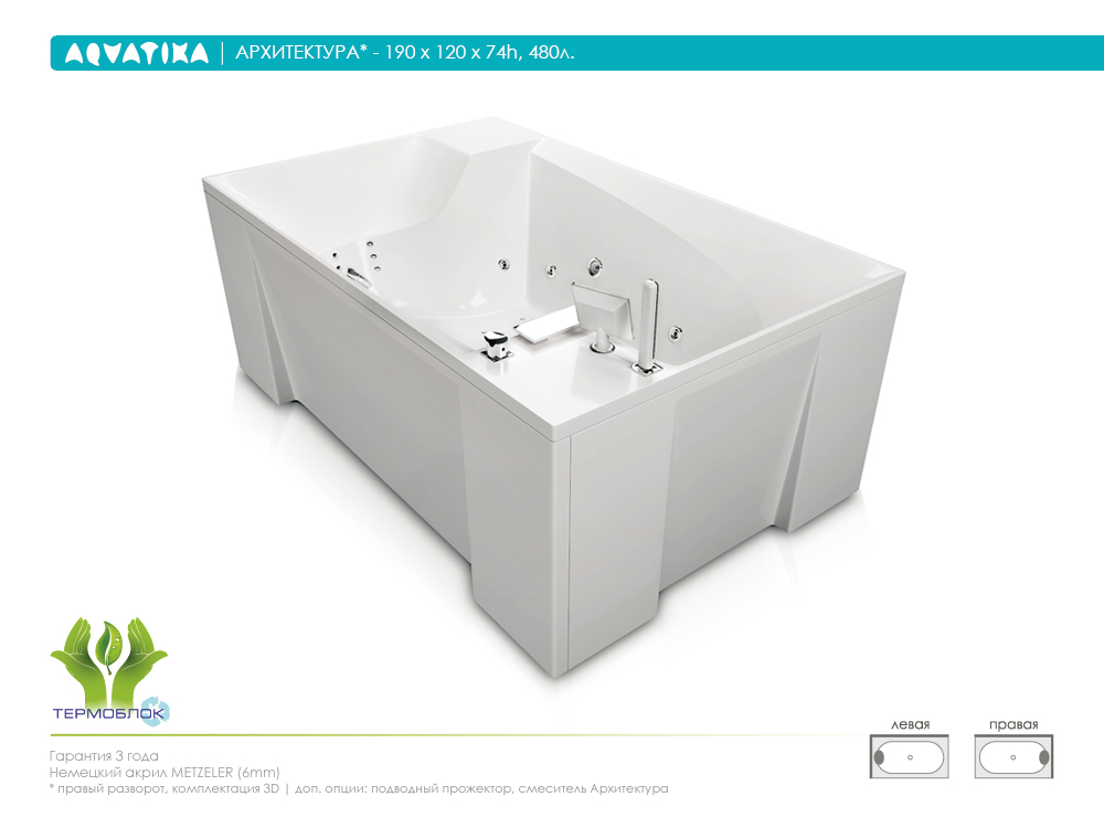 Важно! Вариант ванны правая или левая необходимо указывать при заказе. Разворот ванны Акватика определяет по голове, если подходить со стороны фронтального экрана.