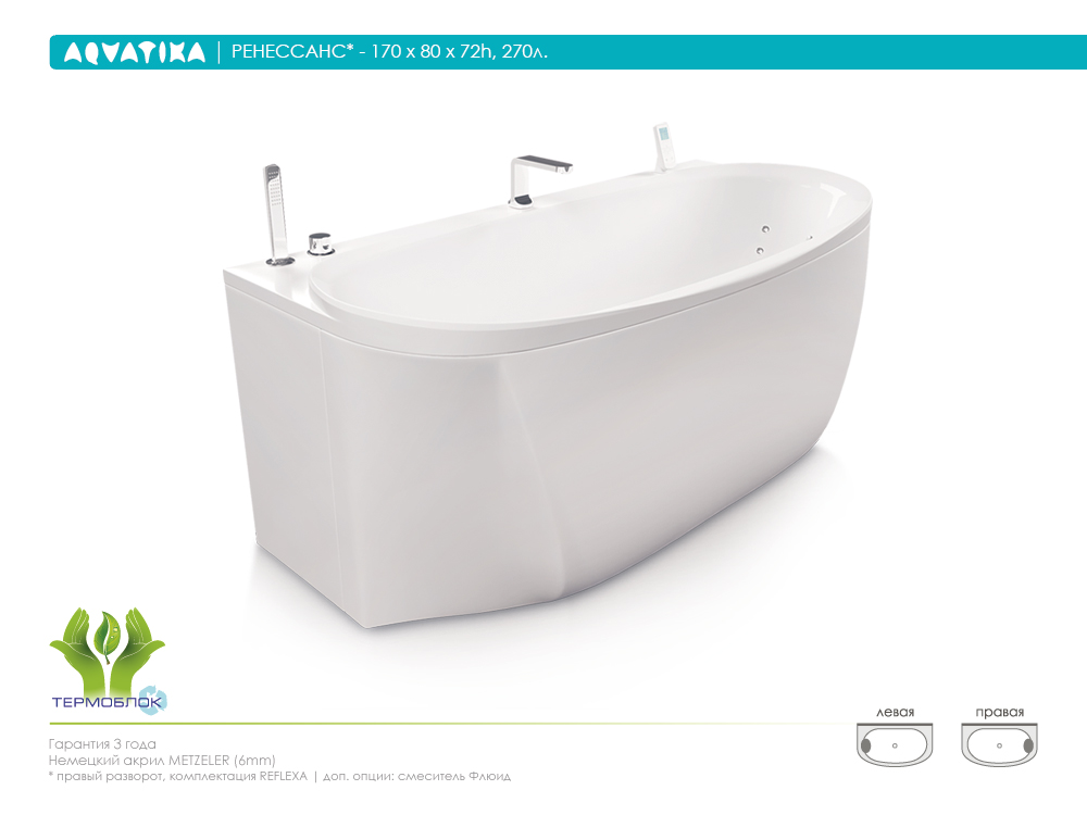 Важно! Вариант ванны правая или левая необходимо указывать при заказе. Разворот ванны Акватика определяет по голове, если подходить со стороны фронтального экрана.