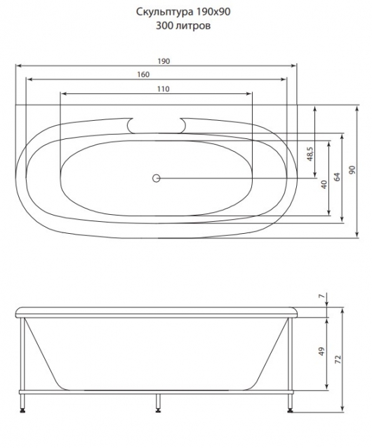 Акриловая ванна «Скульптура» объемом 300 литров станет украшением любого интерьера! Ее эргономичная и универсальная овальная форма удовлетворит даже самого взыскательного покупателя – такая ванна не занимает много места, устанавливается только к одной стене и позволяет использовать освободившееся пространство с пользой. Округлые приподнятые бортики не позволят воде перелиться. На широких треугольных полках можно разместить множество средств для ухода за телом – гелей, шампуней, масел и т.д. Как в любой гидромассажной ванне, в данной модели имеется большое количество форсунок на внутренних бортах, дне и одной из наклонных сторон.