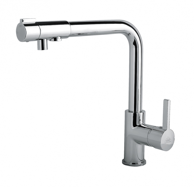 Смеситель Timo Hette 1026 с функцией подключения фильтра для питьевой воды предназначен для монтажа на кухонную мойку или столешницу. Высокий излив подходит для моек с двумя чашами, а также позволяет справляться с мытьем габаритной посуды. В нижней части смесителя установлена трубка с адаптером для соединения с трубкой фильтра. Подача фильтрованной воды осуществляется поворотом ручки дивертора, расположенной на изливе смесителя. Сложностей монтажа не возникает при установке смесителя опытным сантехником.