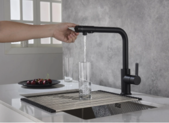 Смеситель Timo Hette 1026 с функцией подключения фильтра для питьевой воды предназначен для монтажа на кухонную мойку или столешницу. Высокий излив подходит для моек с двумя чашами, а также позволяет справляться с мытьем габаритной посуды. В нижней части смесителя установлена трубка с адаптером для соединения с трубкой фильтра. Подача фильтрованной воды осуществляется поворотом ручки дивертора, расположенной на изливе смесителя. Сложностей монтажа не возникает при установке смесителя опытным сантехником.