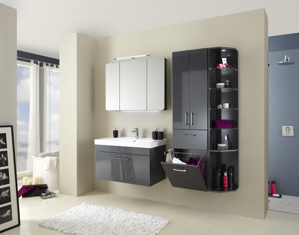 Pelipal Pineo Комплект мебели 92 см с зеркальным шкафчиком и подсветкой, цвет: антрацит